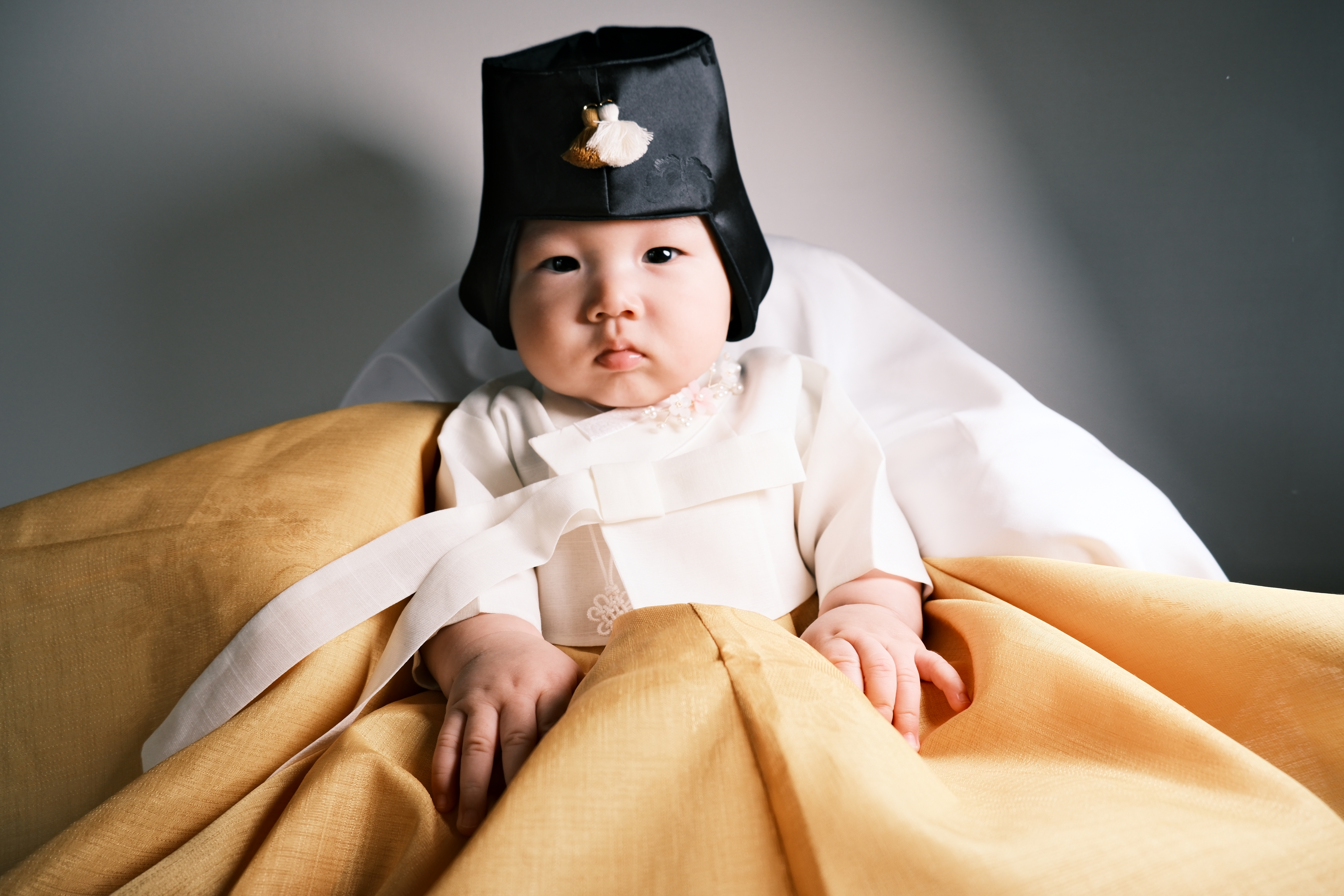 美しい色合いと伝統の美しさを込めた韓服。お子さまの純粋さを引き立て、特別な日を華やかに演出します。